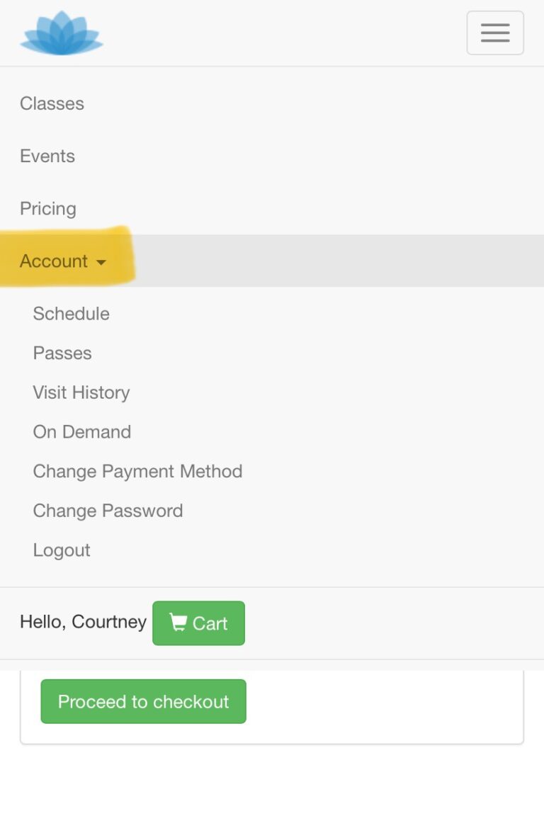 Click the “Account” option highlighted below to find the drop down menu. Here, you will also find necessary information pertaining to your account.
